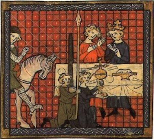 « Et Percevaus sor les .III. gotes / Se rapoia desus sa lance. »