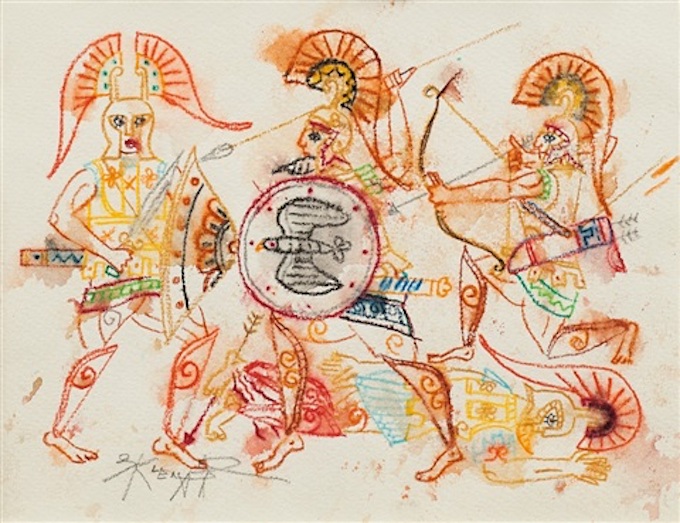 Zdeněk Sklenář, Trojská válka, mixed media on paper, 1979