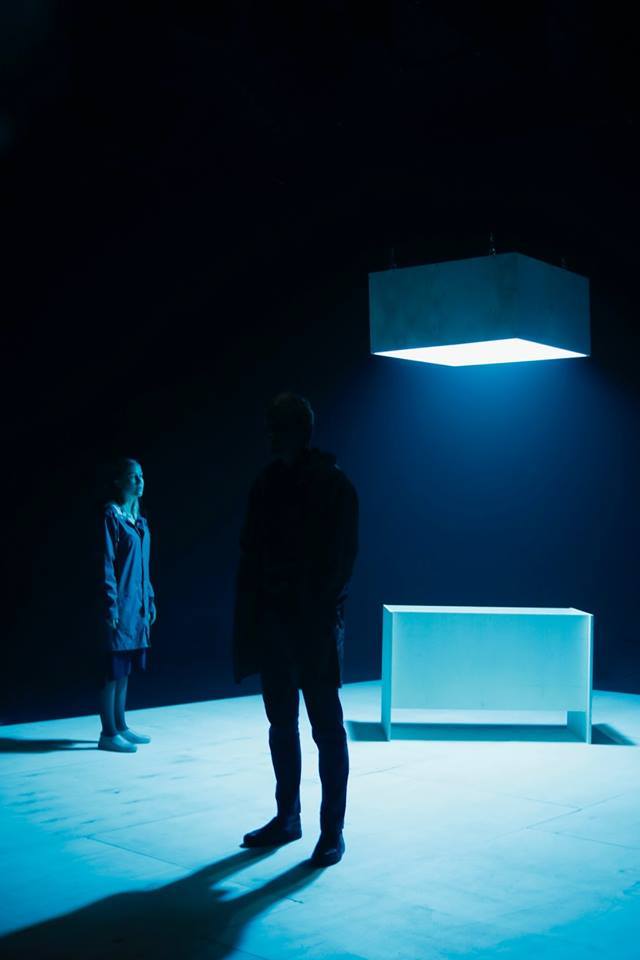 De fait, la question de la parentalité et plus largement des rapports familiaux, déjà présente dans les créations précédentes de Man Haast, est au centre de Winterreise (Voyage d’hiver). Un couple voit apparaître l’objet désiré – l’enfant. Très vite, l’émotion suscitée par la naissance d’un être encore inconnu fait place à des sentiments ambivalents porteurs d’angoisse. Un désir de fuite, d’abandon ou de mort s’empare tour à tour des jeunes parents sans qu’ils parviennent jamais à exprimer leurs sentiments. Dans Voyage d’hiver, la force du langage réside justement dans « l’incapacité de dire » des personnages. C’est ce vide que nous choisissons de questionner. Ici, il est double. L’écriture de Fredrik Brattberg, concise, faussement naïve, nous plonge avec une remarquable économie de moyens dans un univers tragi-comique où des parents échouent à accueillir l’enfant qui vient de naître. Winterreise offre des possibilités scéniques considérables : la scène pourrait être une chambre d’enfant, un wagon de train, un hôpital, un parking… La scène restera finalement un lieu de projection, le vide d’une boîte lumineuse qui révèle des personnages tourmentés par leurs peurs. Un espace où chaque mot, chaque geste est nécessaire mais où l’imaginaire peut se déployer librement. Le décor, ce sera la présence ou l’absence de la lumière qui mène le public au-delà des limites du réel et du temps. Le son viendra briser la stérilité apparente de l’ensemble pour ramener le spectateur à un univers familier : celui des pleurs de l’enfant.